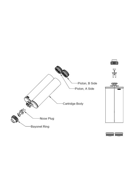 Saídas separadas que proporcionam uma interface livre de vazamentos entre o cartucho e o bico misturador, facilitando a limpeza e eliminando o risco de contaminação cruzada;